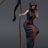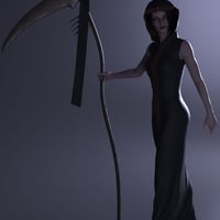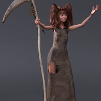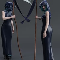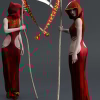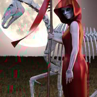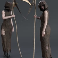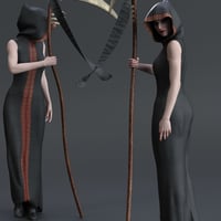 Bring the eternal elegance of Eternal Handmaiden to your images with this slim fitting sleeveless hooded robe, half boots and scythe Clothe your witches, reapers and ghouls in this slim elegant gown with half train and fully rigged skirt and hood. Included are five textures for all items.