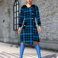 The dForce Fleur Outfit for Genesis 9 is a modern coat with buttons, a cute beret, and open-toe long boots. This stylish outfit is a wardrobe staple for all modern women!