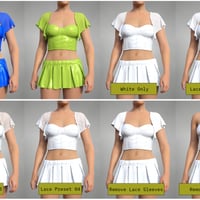 The sleeve of the top includes 4 lace presets to add delicate detail. The outfit is dForce-ready for realistic simulation and includes morphs for fit and style adjustments across all pieces.