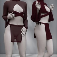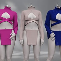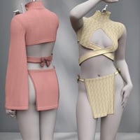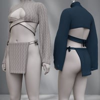 dForce Hana Outfit for Genesis 9 - Make a seductive statement with this playful two-piece ensemble, featuring a flirty crossover top with an elegant bow at the back and a daring mini skirt adorned with side bows.