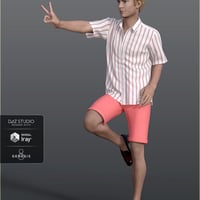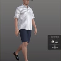 dForce H&C Summer Casual Outfit for Genesis 8 Male(s). This set comes with shorts, shoes, a hat and a button-up shirt. It includes several color options and adjustments for use on a variety of figures.