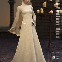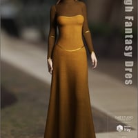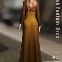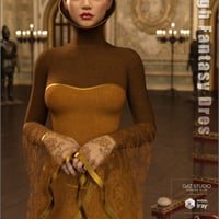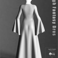 With this versatile dress your Genesis 8 Female(s) can be the queen everyone is looking up to, the romantic princess or the dark fantasy ruler. Dress your figures royally with this dynamic high fantasy gown, consisting of a long-sleeved dress with a long skirt, an additional high collar, and wide sleeves. Included are 3 high-quality texture styles, of which the third style can be easily recolored inside of the surfaces tab for custom colors.