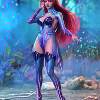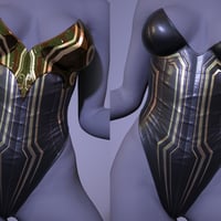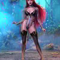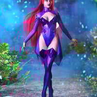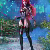 This outfit includes: Belt with Skirt, Bodysuit with breastplate, Top sleeves and Long High heeled boots with Leg Plates.