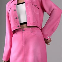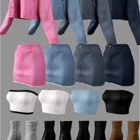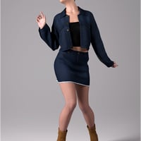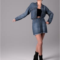 The dForce HnC Cropped Denim Jacket Outfit for Genesis 9 is a casual outfit with a jacket, skirt, top, and boots.