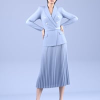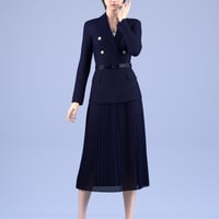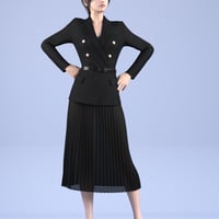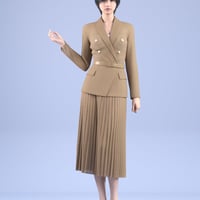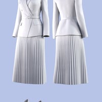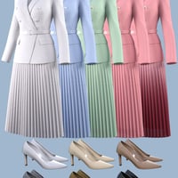This product is a neat style women's formal outfit. It includes a jacket, skirt, heels and top.