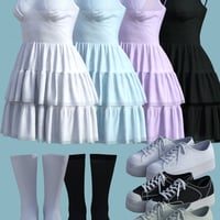 This is a mini dress with shirring. Includes dress, socks, and sneakers.