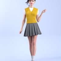 This product is a preppy style knit vest outfit. It consists of a vest, t-shirt, skirt, and sneakers. Thank you.