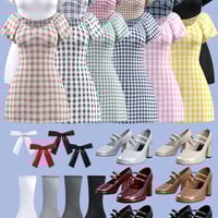 This product is a lovely puff-sleeve dress outfit. It includes the dress, pumps, socks, and a ribbon. Thank you.