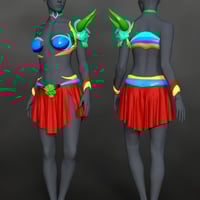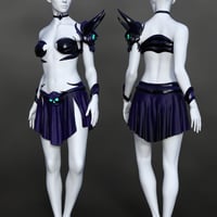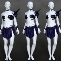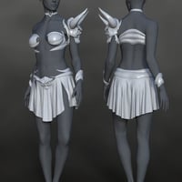 This captivating outfit features a separate top, bottoms, wrist cuffs, and choker, with a short skirt that can be draped using dForce for an organic touch.