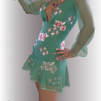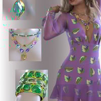 The dForce Iris Dress Outfit is a set of four unique items for your female characters: an elegant light dress with floral patterns, a great necklace with gemstones, bracelets with green marble, and nice simple earrings.