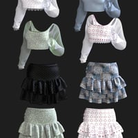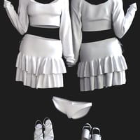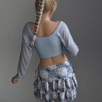 The skirt and top are dForce and the panty is a geoshell; all three effortlessly conform to the dynamic movements of your Genesis 9 character.