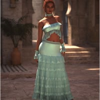 dForce Journei Outfit is the outfit of choice for your character as they roam the wilds of your imagination. They consist of a choker, top, skirt, and cuffs with 9 options of color, texture, and lace. She will be the envy of anyone standing near her.