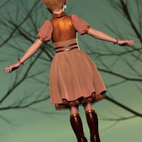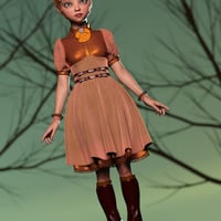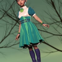 A beautiful outfit, complete with frock, boots, skirt, spats, gloves and neck ruffle. Four materials for each garment are included. Full dForce support.
