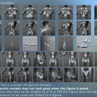The top and bottom have several Special Morphs. Some of the Special Morphs allow the bottoms and tops to be shaped as if they are off the figure and are meant to be used not fitted to a figure.