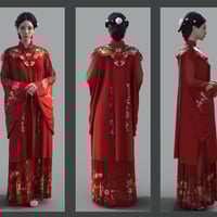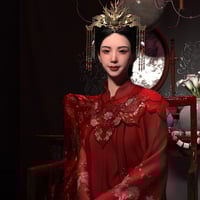 The red version, when worn with the phoenix crown, also serves as a traditional Chinese bridal gown.