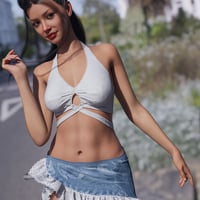 Together, the frilled mini skirt and summer top create a playful outfit, that's ideal for a variety of summertime adventures, from beach outings to late summer dates.