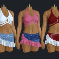 A charming mini skirt adorned with playful frills and a short top, perfect for the warm weather.