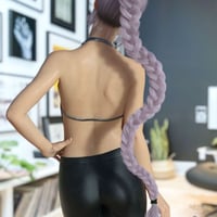 The long plait has an articulate rig consisting of 19 custom bones. Posing the plait is by using the bones with ERC sliders, node transforms, Active Pose Tool, or pose presets. The plaited section does not drape with dForce simulation, however the loose tail at the end can be draped with dForce. Similarly, the bun and topknot do not drape but the topknot wisps can drape. Users may modify these dForce Simulation settings in the Surfaces pane.