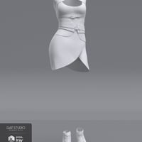 The dForce Lilia Clothing Set for Genesis 8 Female(s) is a busty short-length dress with a corset-like belt and denim-style top, plus stiletto boots.