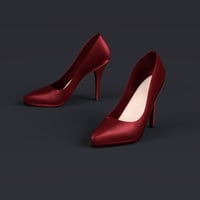 A pair of Charmeuse-covered stiletto-heeled pumps in matching colors completes the look.