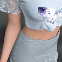 This fun and flirty combo effortlessly blends bold prints with classic denim for a chic, modern look. Perfect for casual outings or a night out, the cropped top adds a trendy edge, while the frilly skirt offers a playful vibe.