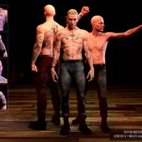 The M3D Matt Outfit and Tattoos Set consists of pants with a belt, a short-sleeved shirt, a half-sleeved shirt, boots, a jacket, an armband, and a hood for Genesis 8.1 and 8 Males. All in many different materials to achieve unique combinations, thus multiplying the possibilities.