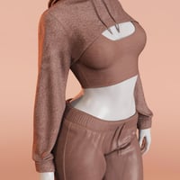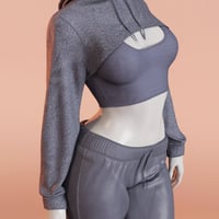 The set includes a cropped hoodie, fitted top, and sporty pants, enhanced by 3 texture packs that add subtle variety while preserving a clean, realistic fabric look.