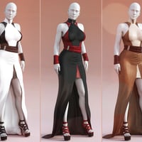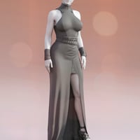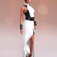 dForce M8 Obsidian Grace Dress for Genesis merges minimalist elegance with a dangerously alluring edge. A figure-hugging gown with a high collar, bold side slit, and leather corset accentuates the form, striking a balance between softness and strength. A long train adds refinement, while raw details break tradition. Made for women with equal parts grace and bite.
