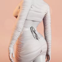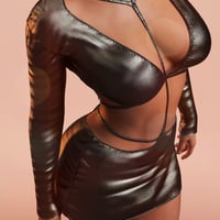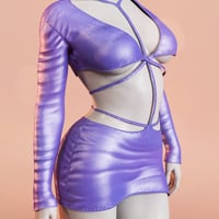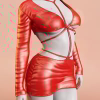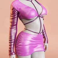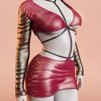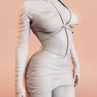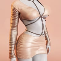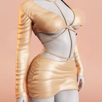 With its striking cutouts and intricate strap details, this dress frames the silhouette with confidence and allure, while the long fitted sleeves balance the boldness with a touch of refined edge. Its shimmering fabric flows naturally over the figure, ensuring every render radiates glamour and intensity.