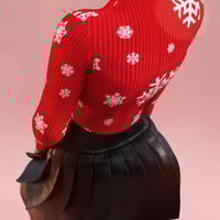 Featuring a chic ribbed top with winter-inspired patterns, a sleek pleated skirt, and matching tights that add a touch of sophistication and playful charm, it offers the perfect balance between comfort and style.