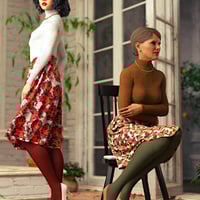Included is a conforming turtleneck sweater, heels with stockings, necklace prop and dynamic skirt.