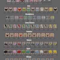 Accessories: Long gloves, heart choker, demon horns + bat wings, shoes