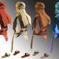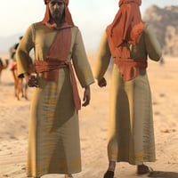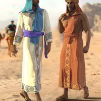 The dForce Middle East Desert Outfit for Genesis 9 is a 3D clothing set designed for use with the Genesis 9 figure. This outfit typically includes garments inspired by traditional Middle Eastern attire, suited for a desert environment. It often features elements like flowing robes, scarves, and accessories that reflect the style and cultural significance of clothing from that region. Included are six High-resolution texture sets that provide realistic fabric appearances, including patterns, colors, and materials suitable for a desert setting offering a variety of styles that can suit different characters and narratives.