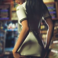dForce Midnight Cashier is a contemporary outfit inspired by the atmosphere of late-night convenience stores, artificial lighting, and the quiet poetry that inhabits places open after hours, when the world begins to slow down.