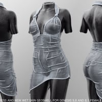 dForce Mini Dress Wet and Dry for Genesis 9, 8 and 8.1 Female has Dry Shape Preset and slightly different 3 HD Wet Shape and Material Presets.