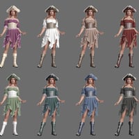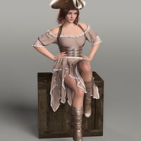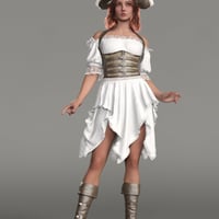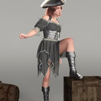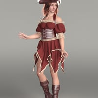The dForce MK Pirate Queen Outfit for Genesis 9 is a stunning costume designed for Genesis 9 figures. This package includes a dress, a waistcoat, a hat, and a pair of tall boots. The outfit is available in eight vibrant and eye-catching colors. It features a unique and attractive design, with an off-shoulder dress, asymmetrical hemline, fitted corset, and pirate hat that combine vintage and modern elements to create a classic pirate style.