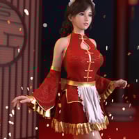 dForce MKTG Summer Maid Outfit for Genesis 8.1 and 9 comes in 4 colors: lacquerware, blue and white porcelain, ink painting, and festivals. Suitable for Asian-inspired scenes.