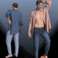 Give your Genesis 8 Male(s) a classic hot look in this set of jeans with an open shirt and rolled sleeves.