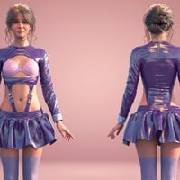 Consisting of a top, breastplate, skirt, socks, and high heels, it's compatible with most Genesis 9 female characters.
