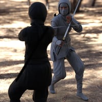 This complete Ninja outfit for Genesis 8 Female includes all traditional ninja garb such as mask, tunic, pants, robes, undershirt, pants, and shoes, plus included sword and sheath.