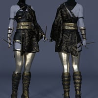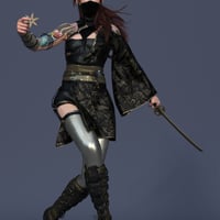 The dForce Oni Shadow Outfit for Genesis 8 and 8.1 Females is comprised of a shuriken, sai, wakizashi, boots, leggings, mask, glove, harness, belt, suit, and kimono. dForce Oni Shadow comes with tons of supported shapes and widen morphs to fit Genesis 8 Female in most poses just right. Get dForce Oni Shadow for your next sci-fi, fantasy and anime renders!