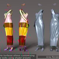 The outfit includes hierarchical material presets for changing the look of the outfit and additional material and shader presets for changing parts of the outfit or selected surfaces.