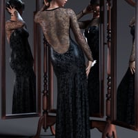 The dForce Phantasm Gown Outfit for Genesis 9 consists of a floor length, dropped waits, long sleeved gown in Lace and Satin with three versions of material and five different colours to choose from.