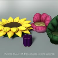 Includes 10 Cushions, 7 Floor Mats, and 4 pieces of Furniture. Iray Materials and Shaders include 9 Color Presets and a Customizable Preset. Available in Fleece and Silky Fabrics. Plus Customizable Stitching Preset. Cushions also include 3 Variegated Color options. Also included are 4 Pre-Load Presets.