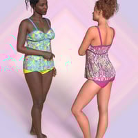 With the dForce Playful Tankini Outfit, you get 2 in 1 - a swimsuit and a lingerie outfit for Genesis 9.