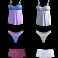 It comes with a dForce Tankini Top, Tankini Pantie, and Tankini Tanga - all 3 with several material options to mix and match for a swimsuit and for lingerie.