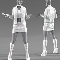 The set consists of a Shirt, Jacket, Mini-Skirt, Stockings, Knee Boots, Right Hand Glove, Small Hoop Earrings, Bracelet, Hair Clips, Chain Belt and even gives you the option of using a traditional Microphone or an Earpiece!