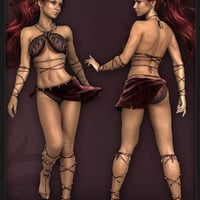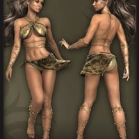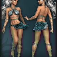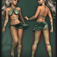 Also included are 8 materials in many colors, which are reptilian in nature, giving it a look that can be paired with their respective reptiles, or even dragons. The materials on the skirt are tattered out, giving a suitable worn out look for a queen of the jungle. And as always, both Iray and 3Delight materials are included.