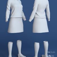 The dForce Private School Outfit for Genesis 8 Females is perfect for characters attending private school or just looking for a dressier everyday outfit. It consists of the shoes, socks, skirt, and sweater with collar, each with 5 material options.