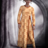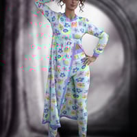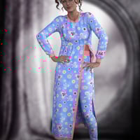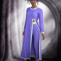 It includes a pair of pyjama bottoms, a long flowy split pyjama sweater, 5 full knit styles, 5 full print styles, and several options to mix and match in Iray.